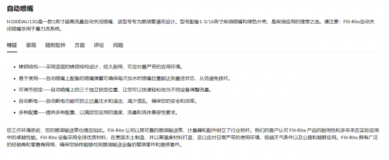 FILL-RITE 大流量自动柴油喷嘴N100DAU13G