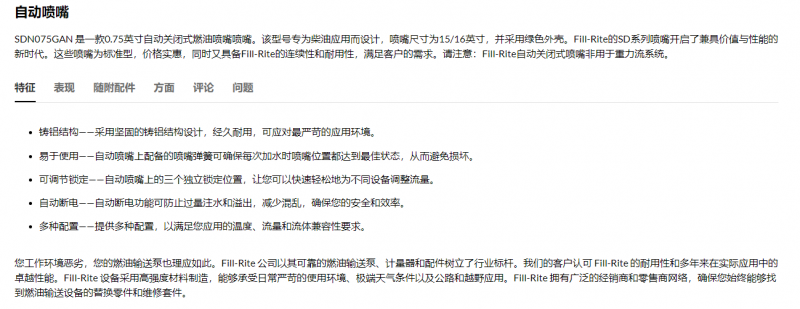FILL-RITE 自动柴油喷嘴SDN075GAN系列