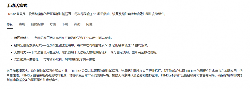 FILL-RITE 活塞式手动燃油输送泵FR20V系